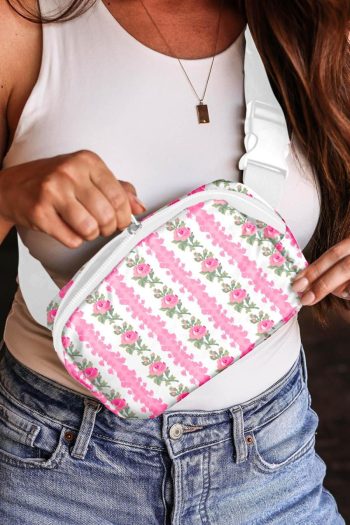Crossbody Shop | White Striped Floral Crossbody Bag